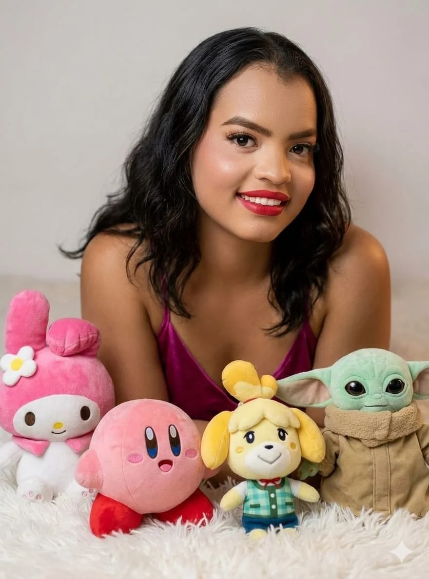 “Between stuffed animals and smiles I hide my sweetest side… but be careful, because behind this tenderness there is a girl who knows how to awaken your fantasies 💕🧸”